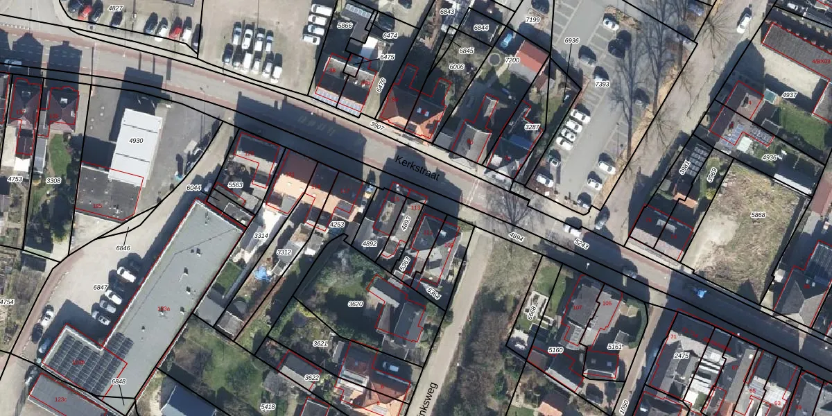 Het perceel waarop Kerkstraat 113 staat heeft een oppervlakte van 78 m². Dit is een klein perceel. De perceeloppervlakte wordt geregistreerd door het Kadaster. Gedetailleerde informatie over de maten van dit perceel kunt u vinden in het rapport Kadastrale kaart met maatvoering van Kerkstraat 113.
