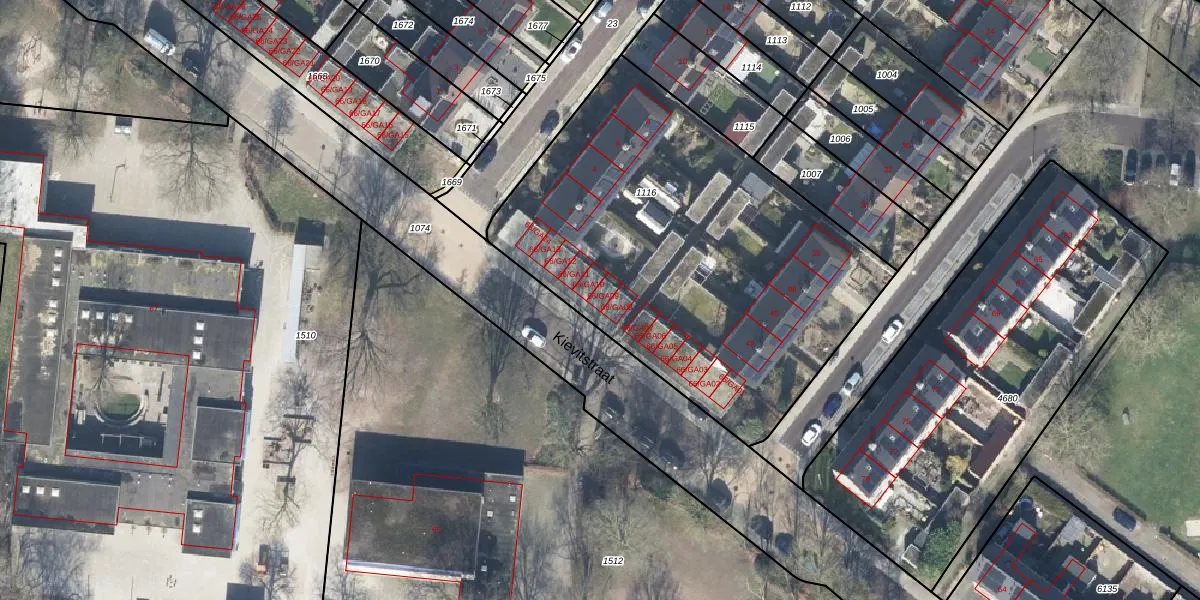 Het perceel waarop Kievitstraat 66-GA09 staat heeft een oppervlakte van 2245 m². Dit is een zeer groot perceel. De perceeloppervlakte wordt geregistreerd door het Kadaster. Gedetailleerde informatie over de maten van dit perceel kunt u vinden in het rapport Kadastrale kaart met maatvoering van Kievitstraat 66-GA09.