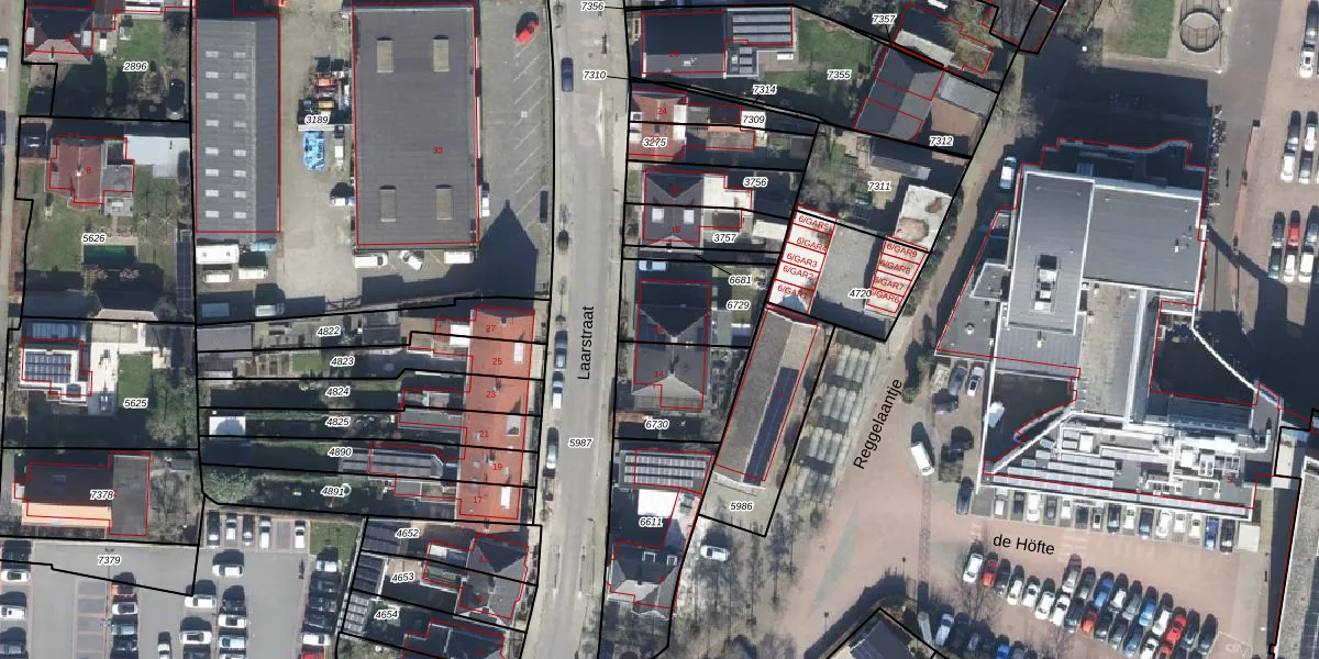 Gebruik de zoekbalk of klik op een perceel voor informatie over de adressen binnen dit perceel.
