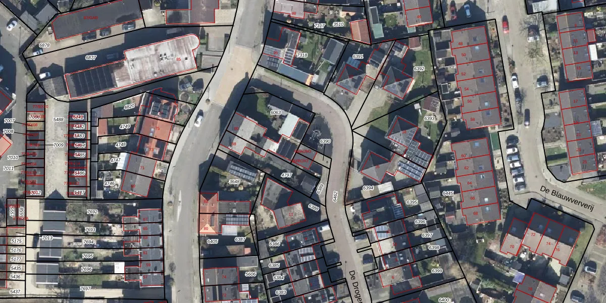 Gebruik de zoekbalk of klik op een perceel voor informatie over de adressen binnen dit perceel.