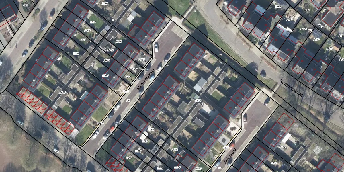 Het perceel waarop Meerkolstraat 16 staat heeft een oppervlakte van 2941 m². Dit is een zeer groot perceel. De perceeloppervlakte wordt geregistreerd door het Kadaster. Gedetailleerde informatie over de maten van dit perceel kunt u vinden in het rapport Kadastrale kaart met maatvoering van Meerkolstraat 16.