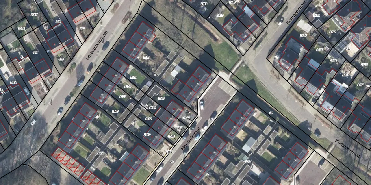 Het perceel waarop Meerkolstraat 17 staat heeft een oppervlakte van 1274 m². Dit is een zeer groot perceel. De perceeloppervlakte wordt geregistreerd door het Kadaster. Gedetailleerde informatie over de maten van dit perceel kunt u vinden in het rapport Kadastrale kaart met maatvoering van Meerkolstraat 17.