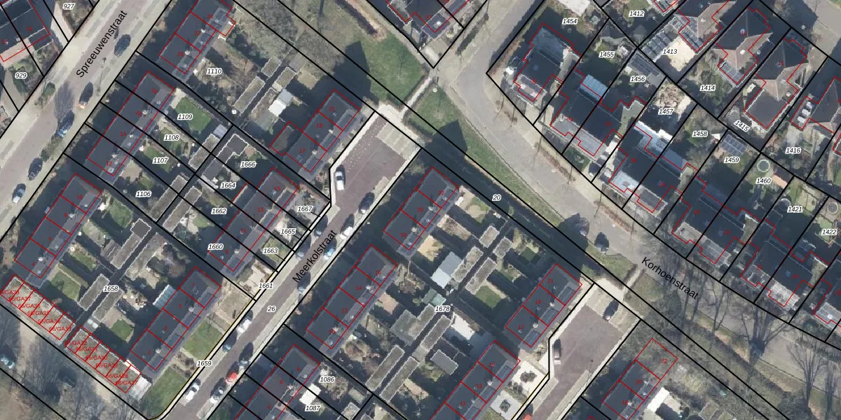 Het perceel waarop Meerkolstraat 20 staat heeft een oppervlakte van 2941 m². Dit is een zeer groot perceel. De perceeloppervlakte wordt geregistreerd door het Kadaster. Gedetailleerde informatie over de maten van dit perceel kunt u vinden in het rapport Kadastrale kaart met maatvoering van Meerkolstraat 20.
