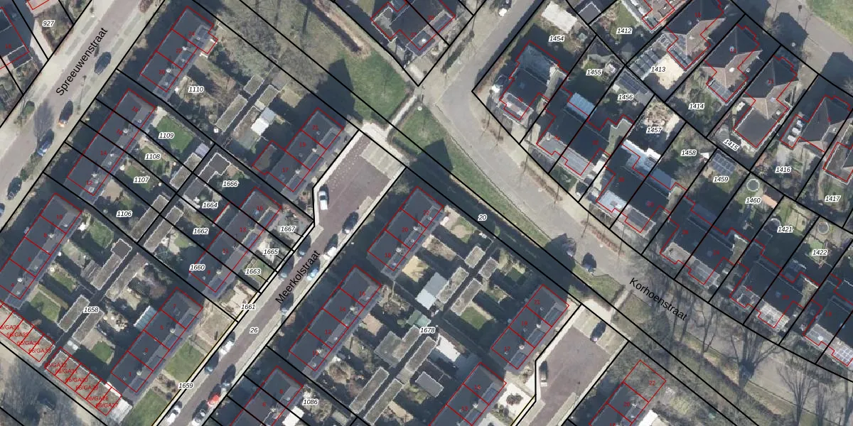 Het perceel waarop Meerkolstraat 22 staat heeft een oppervlakte van 2941 m². Dit is een zeer groot perceel. De perceeloppervlakte wordt geregistreerd door het Kadaster. Gedetailleerde informatie over de maten van dit perceel kunt u vinden in het rapport Kadastrale kaart met maatvoering van Meerkolstraat 22.
