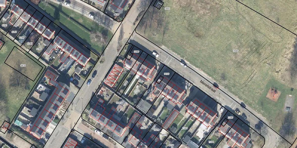 Het perceel waarop Merelstraat 25 staat heeft een oppervlakte van 1711 m². Dit is een zeer groot perceel. De perceeloppervlakte wordt geregistreerd door het Kadaster. Gedetailleerde informatie over de maten van dit perceel kunt u vinden in het rapport Kadastrale kaart met maatvoering van Merelstraat 25.