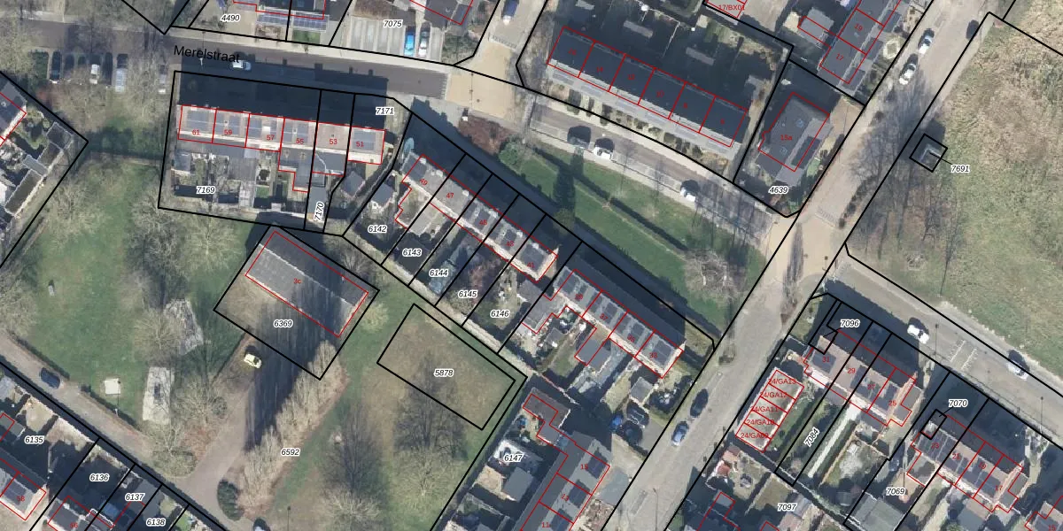 Merelstraat 41 is gelegen op kadastraal perceel GOO00C6146. Deze kadastrale aanduiding is uniek en wordt gebruikt door het Kadaster om eigendomsrechten en andere zakelijke rechten vast te leggen. Het perceel maakt onderdeel uit van de kadastrale gemeente Goor.