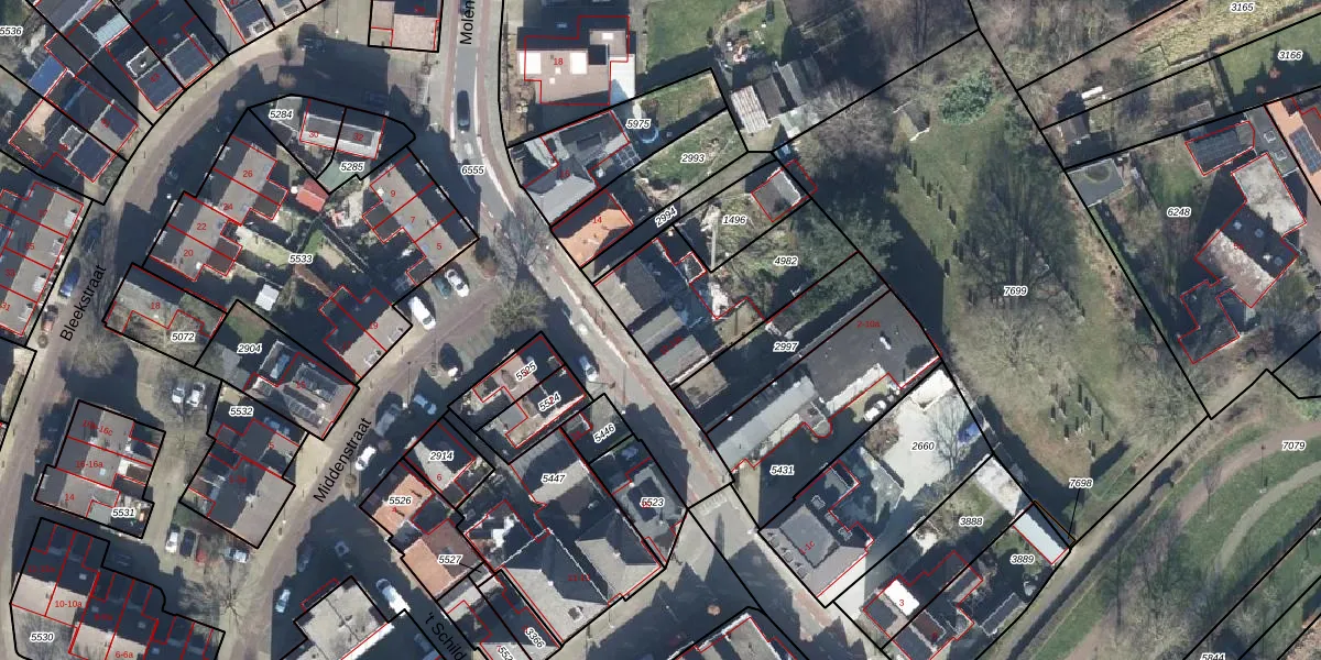 Het perceel waarop Molenstraat 12-b staat heeft een oppervlakte van 505 m². Dit is een groot perceel. De perceeloppervlakte wordt geregistreerd door het Kadaster. Gedetailleerde informatie over de maten van dit perceel kunt u vinden in het rapport Kadastrale kaart met maatvoering van Molenstraat 12-b.