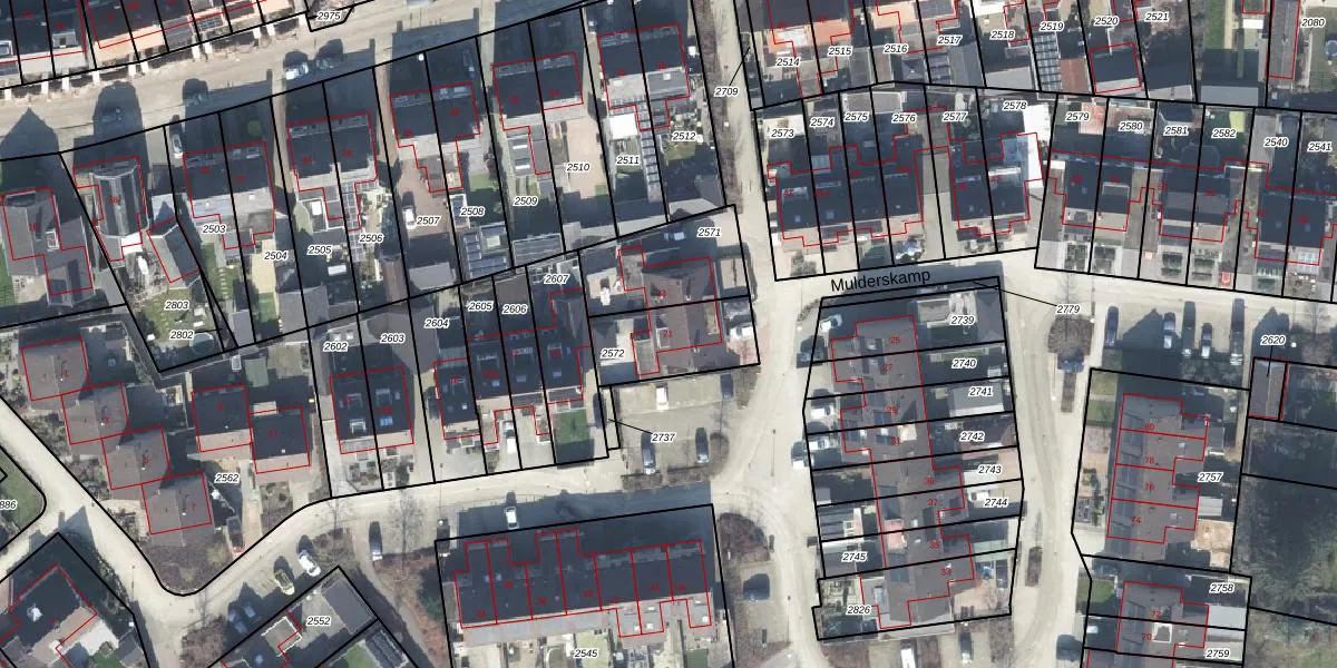 Het perceel waarop Mulderskamp 21 staat heeft een oppervlakte van 251 m². Dit is een middelgroot perceel. De perceeloppervlakte wordt geregistreerd door het Kadaster. Gedetailleerde informatie over de maten van dit perceel kunt u vinden in het rapport Kadastrale kaart met maatvoering van Mulderskamp 21.