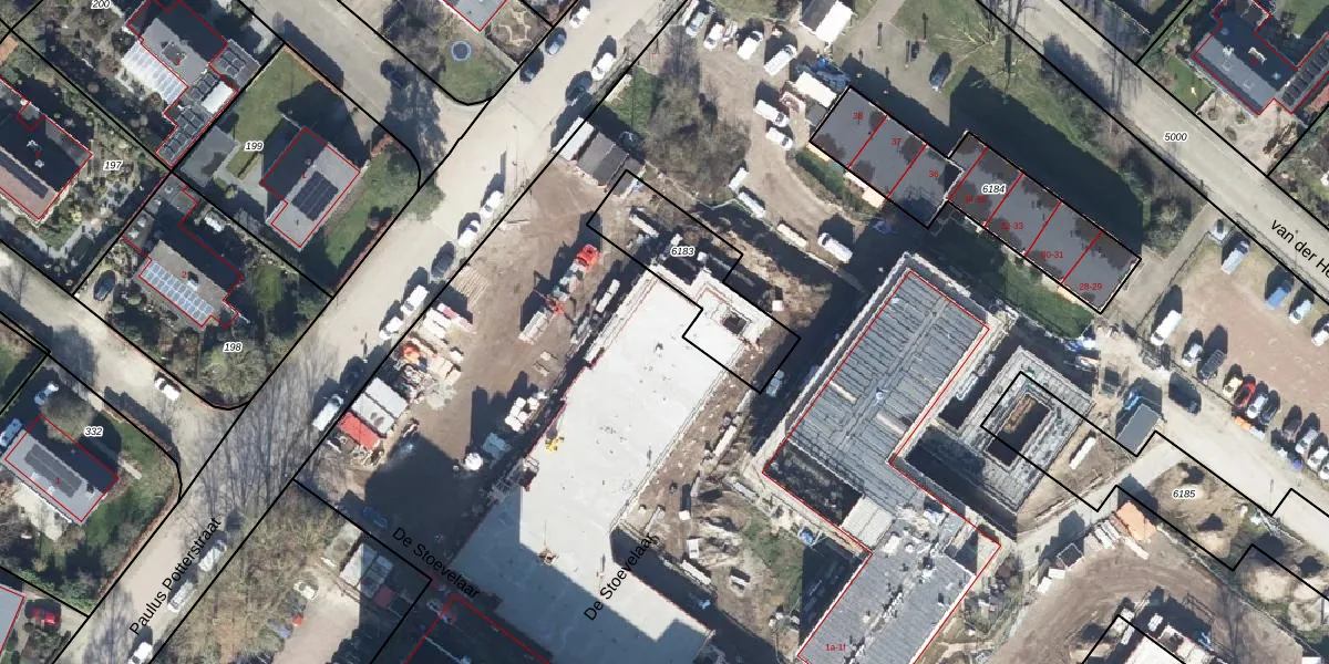 Het perceel waarop Paulus Potterstraat 7-7 staat heeft een oppervlakte van 2,9 ha. Dit is een zeer groot perceel. De perceeloppervlakte wordt geregistreerd door het Kadaster. Gedetailleerde informatie over de maten van dit perceel kunt u vinden in het rapport Kadastrale kaart met maatvoering van Paulus Potterstraat 7-7.
