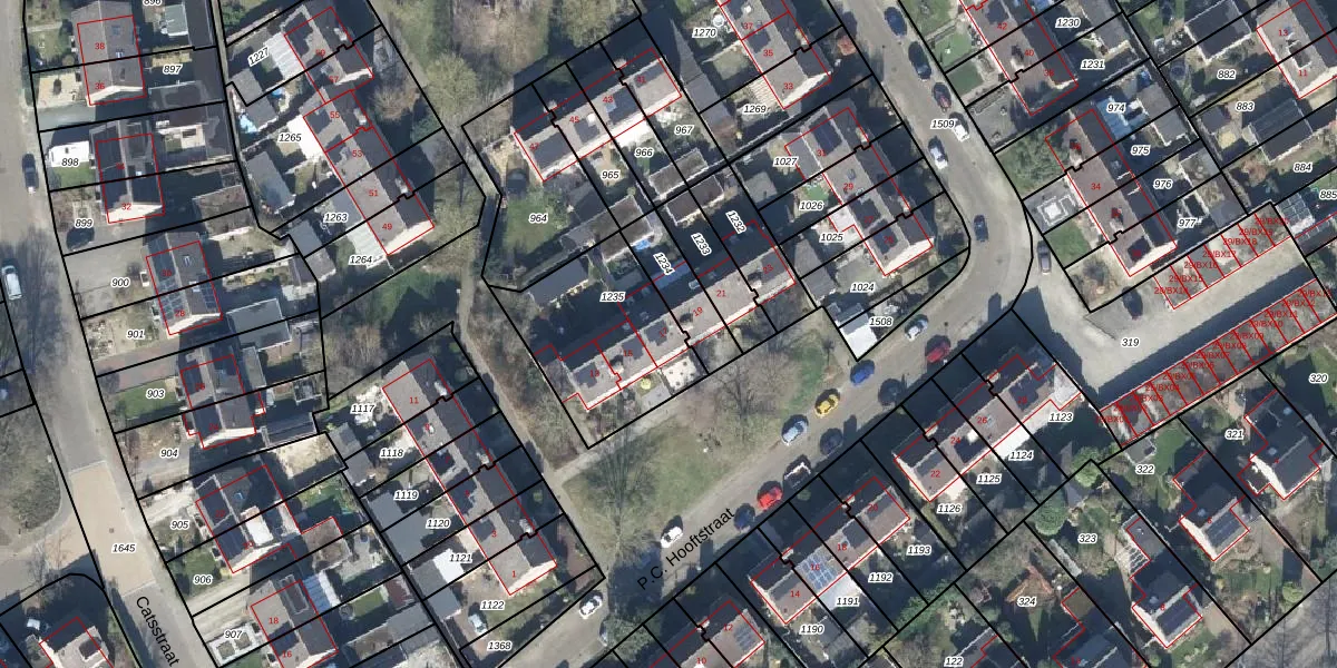 Het perceel waarop P.C. Hooftstraat 17 staat heeft een oppervlakte van 542 m². Dit is een groot perceel. De perceeloppervlakte wordt geregistreerd door het Kadaster. Gedetailleerde informatie over de maten van dit perceel kunt u vinden in het rapport Kadastrale kaart met maatvoering van P.C. Hooftstraat 17.