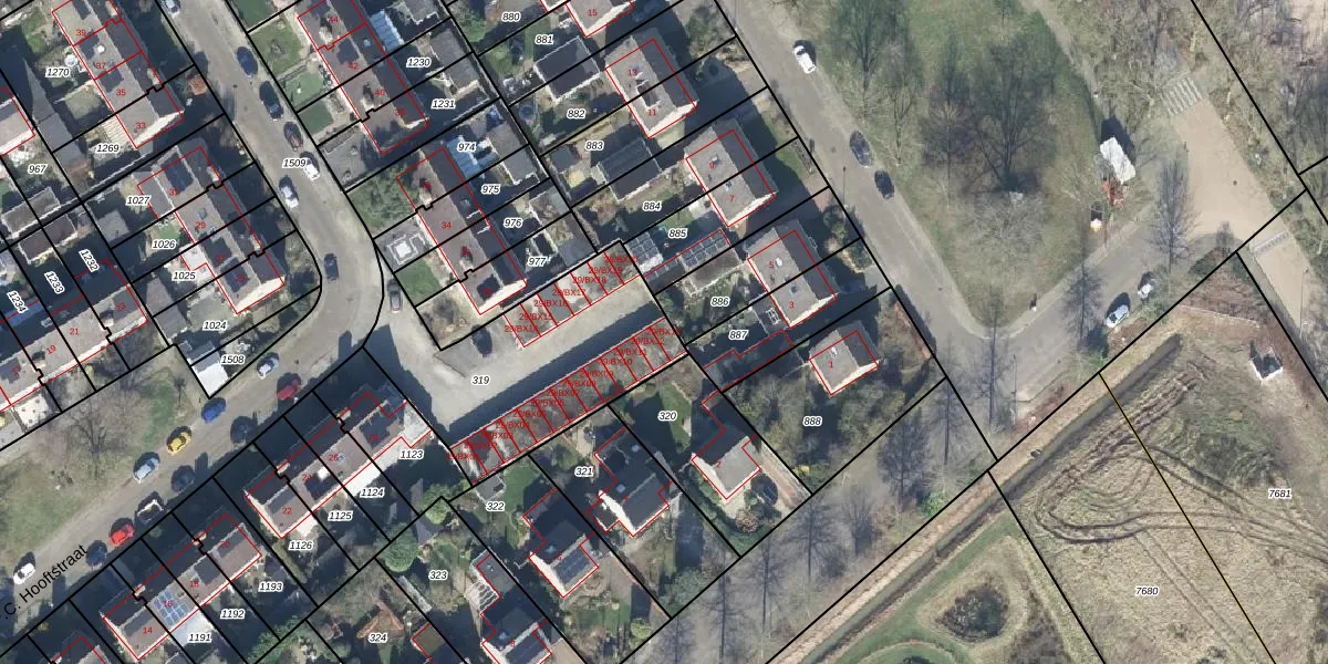 Het perceel waarop P.C. Hooftstraat 29-BX13 staat heeft een oppervlakte van 880 m². Dit is een groot perceel. De perceeloppervlakte wordt geregistreerd door het Kadaster. Gedetailleerde informatie over de maten van dit perceel kunt u vinden in het rapport Kadastrale kaart met maatvoering van P.C. Hooftstraat 29-BX13.