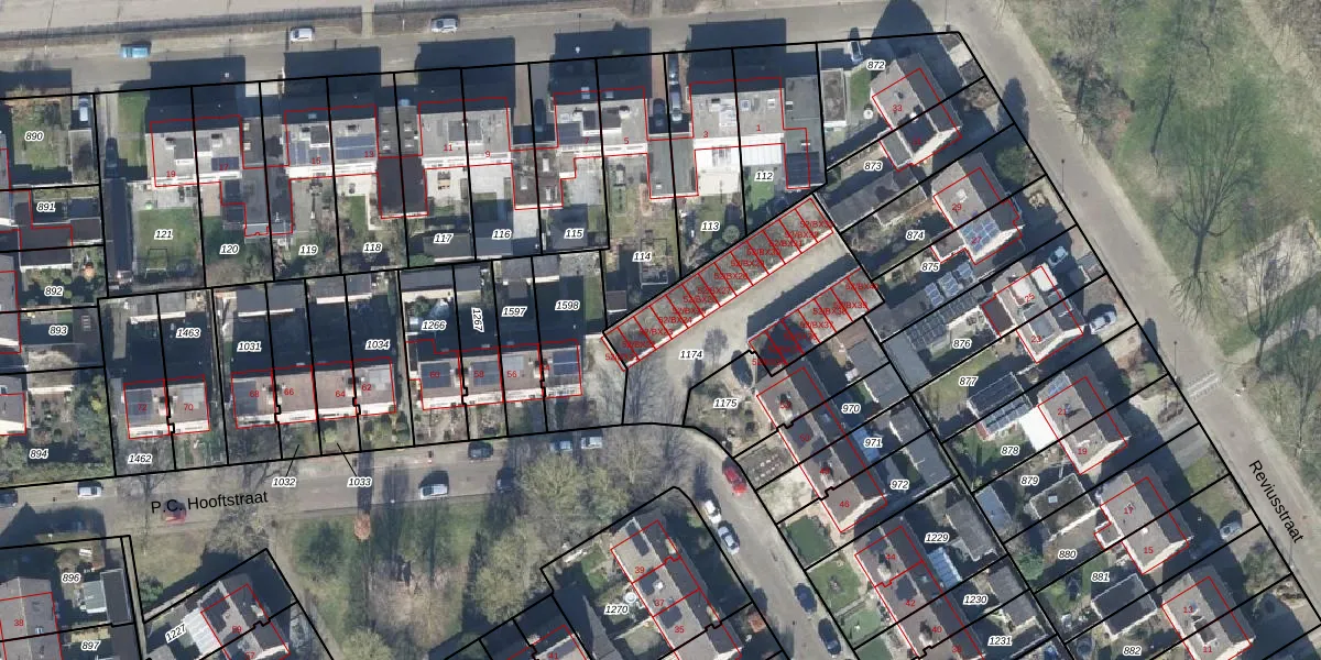 Het perceel waarop P.C. Hooftstraat 52-BX23 staat heeft een oppervlakte van 709 m². Dit is een groot perceel. De perceeloppervlakte wordt geregistreerd door het Kadaster. Gedetailleerde informatie over de maten van dit perceel kunt u vinden in het rapport Kadastrale kaart met maatvoering van P.C. Hooftstraat 52-BX23.