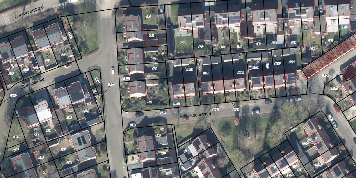 Het perceel waarop P.C. Hooftstraat 72 staat heeft een oppervlakte van 243 m². Dit is een middelgroot perceel. De perceeloppervlakte wordt geregistreerd door het Kadaster. Gedetailleerde informatie over de maten van dit perceel kunt u vinden in het rapport Kadastrale kaart met maatvoering van P.C. Hooftstraat 72.