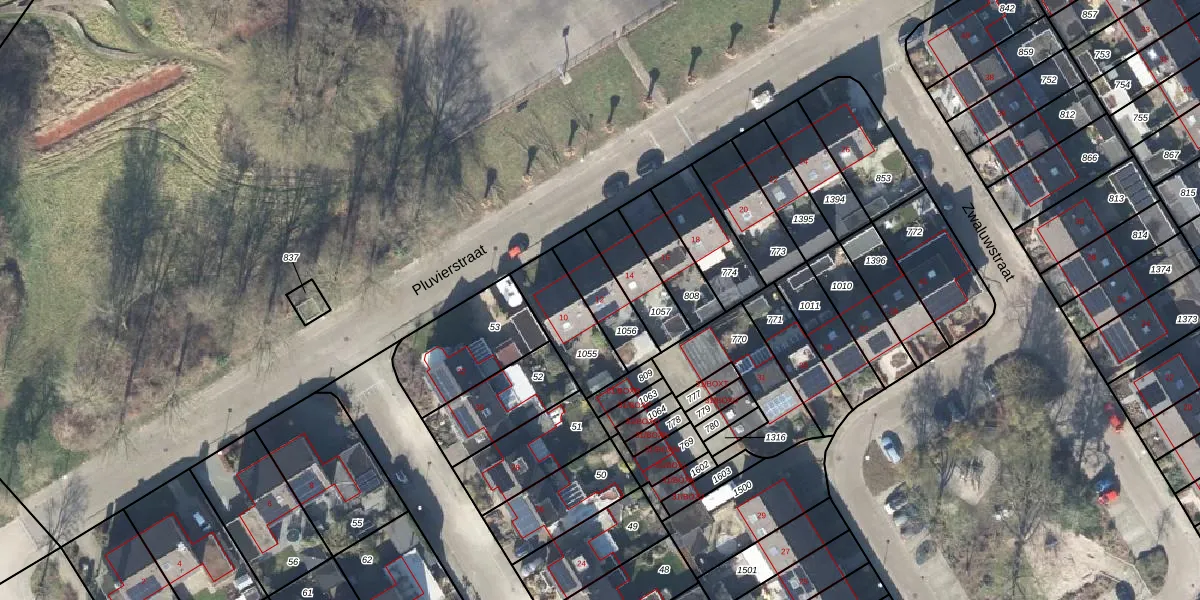 Het perceel waarop Pluvierstraat 12 staat heeft een oppervlakte van 155 m². Dit is een middelgroot perceel. De perceeloppervlakte wordt geregistreerd door het Kadaster. Gedetailleerde informatie over de maten van dit perceel kunt u vinden in het rapport Kadastrale kaart met maatvoering van Pluvierstraat 12.
