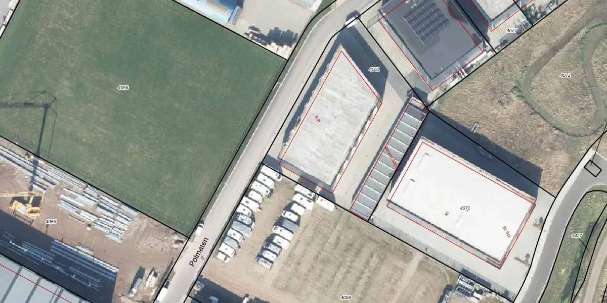 Het perceel waarop Polmaten 9-e staat heeft een oppervlakte van 1995 m². Dit is een zeer groot perceel. De perceeloppervlakte wordt geregistreerd door het Kadaster. Gedetailleerde informatie over de maten van dit perceel kunt u vinden in het rapport Kadastrale kaart met maatvoering van Polmaten 9-e.