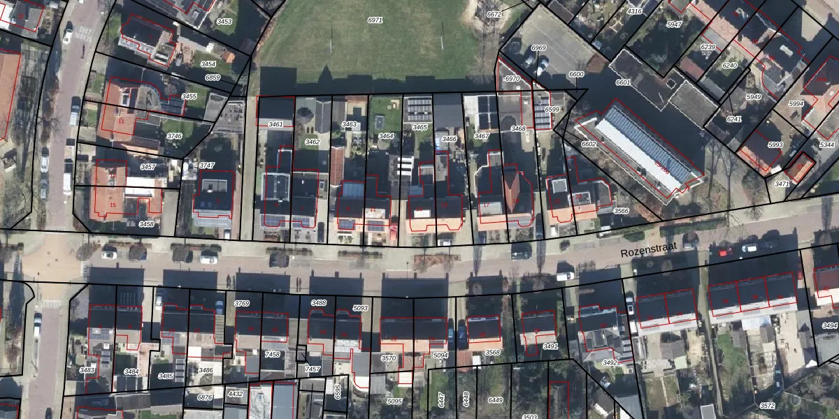 Rozenstraat 13 is gelegen op kadastraal perceel GOO00C3465. Deze kadastrale aanduiding is uniek en wordt gebruikt door het Kadaster om eigendomsrechten en andere zakelijke rechten vast te leggen. Het perceel maakt onderdeel uit van de kadastrale gemeente Goor.