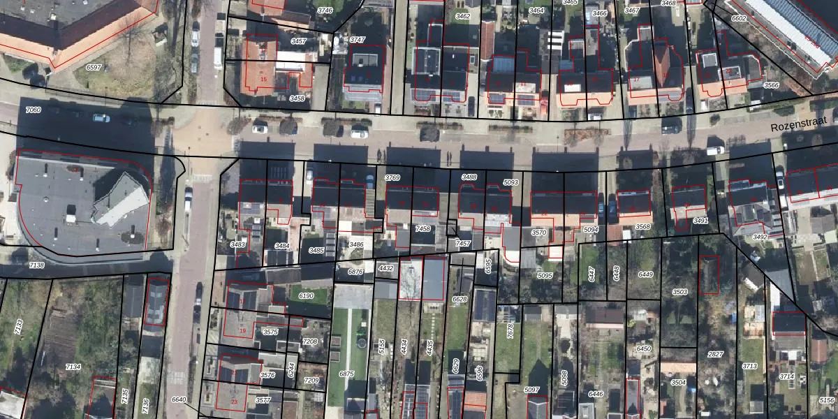 Het perceel waarop Rozenstraat 16 staat heeft een oppervlakte van 180 m². Dit is een middelgroot perceel. De perceeloppervlakte wordt geregistreerd door het Kadaster. Gedetailleerde informatie over de maten van dit perceel kunt u vinden in het rapport Kadastrale kaart met maatvoering van Rozenstraat 16.