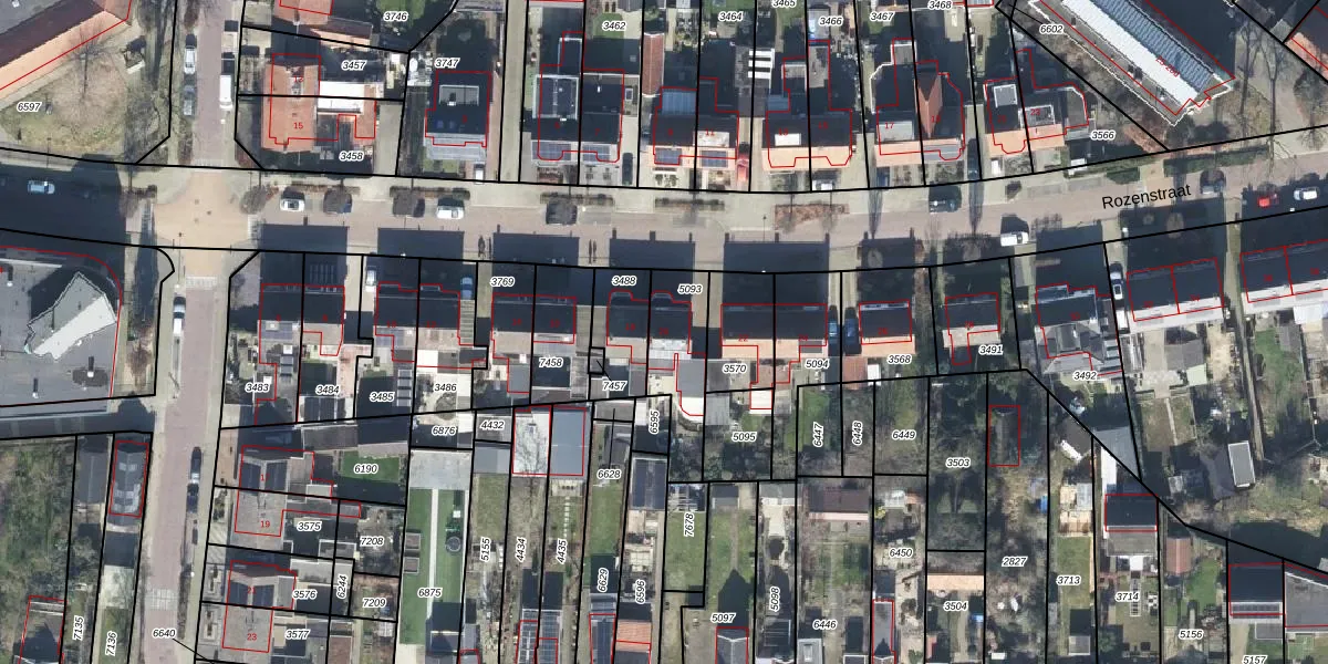 Gebruik de zoekbalk of klik op een perceel voor informatie over de adressen binnen dit perceel.