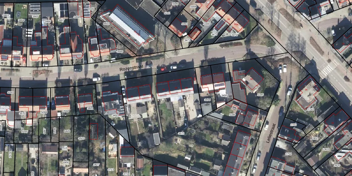 Het perceel waarop Rozenstraat 38 staat heeft een oppervlakte van 3085 m². Dit is een zeer groot perceel. De perceeloppervlakte wordt geregistreerd door het Kadaster. Gedetailleerde informatie over de maten van dit perceel kunt u vinden in het rapport Kadastrale kaart met maatvoering van Rozenstraat 38.