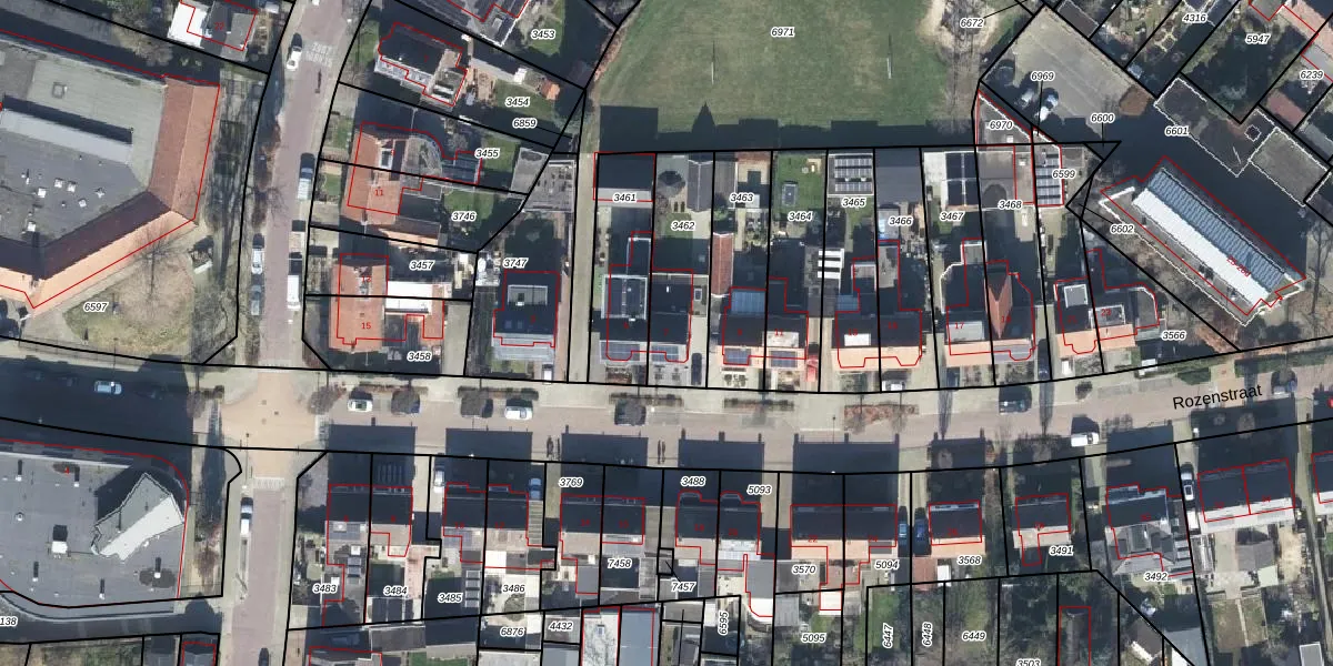 Gebruik de zoekbalk of klik op een perceel voor informatie over de adressen binnen dit perceel.