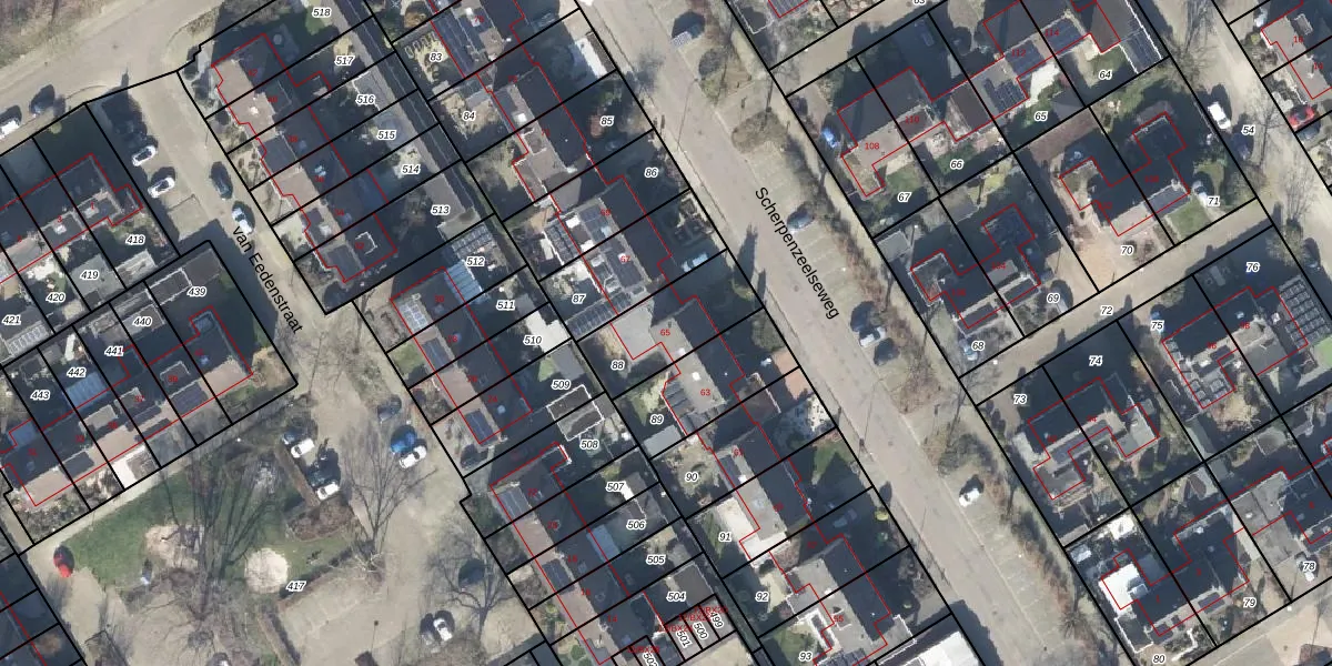 Gebruik de zoekbalk of klik op een perceel voor informatie over de adressen binnen dit perceel.