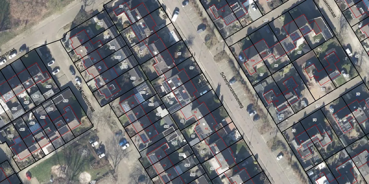 Gebruik de zoekbalk of klik op een perceel voor informatie over de adressen binnen dit perceel.