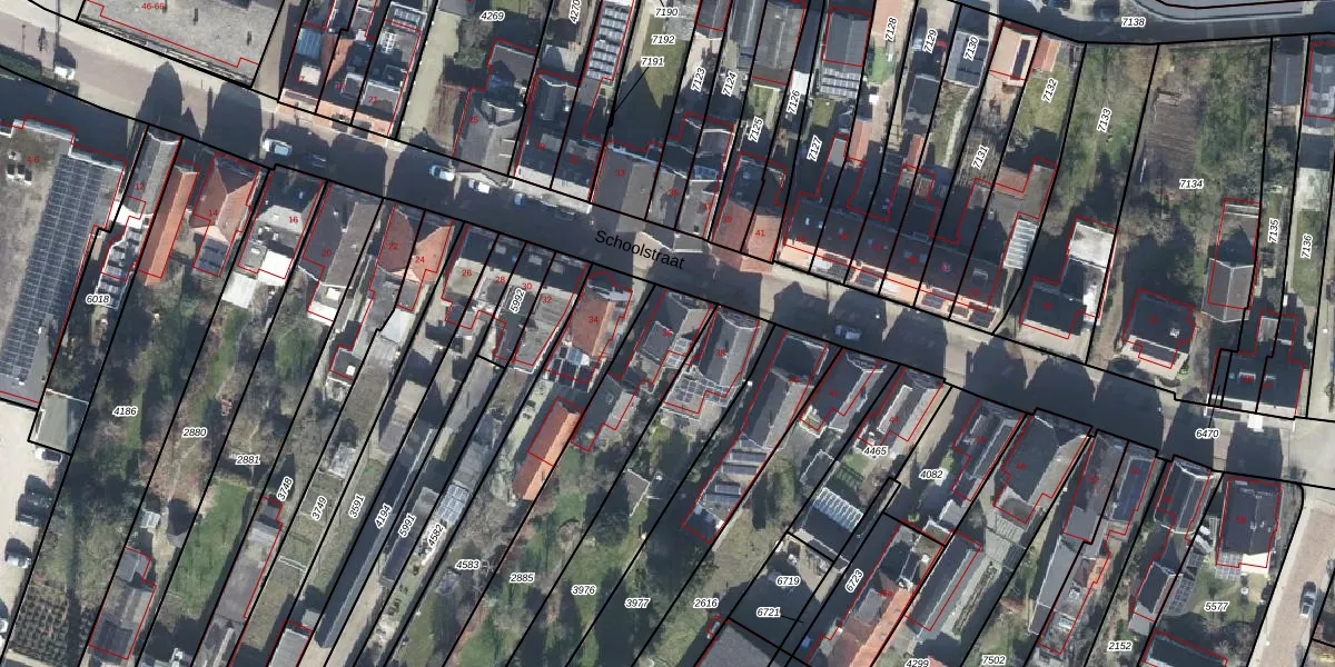 Het perceel waarop Schoolstraat 36 staat heeft een oppervlakte van 726 m². Dit is een groot perceel. De perceeloppervlakte wordt geregistreerd door het Kadaster. Gedetailleerde informatie over de maten van dit perceel kunt u vinden in het rapport Kadastrale kaart met maatvoering van Schoolstraat 36.