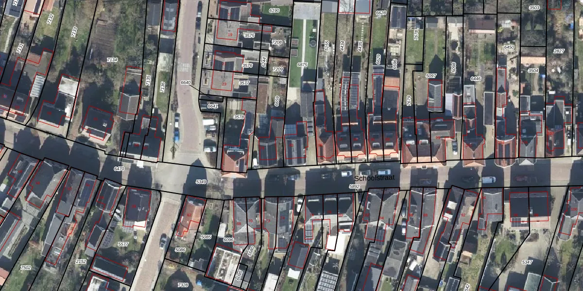 Gebruik de zoekbalk of klik op een perceel voor informatie over de adressen binnen dit perceel.