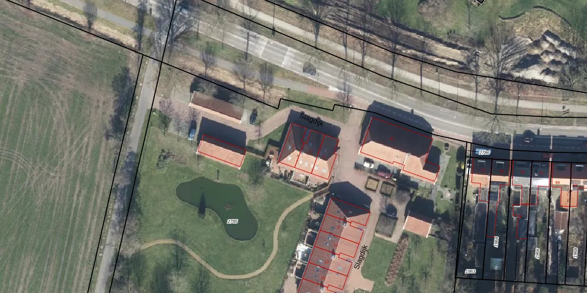 Het perceel waarop Slagdijk 1 staat heeft een oppervlakte van 8291 m². Dit is een zeer groot perceel. De perceeloppervlakte wordt geregistreerd door het Kadaster. Gedetailleerde informatie over de maten van dit perceel kunt u vinden in het rapport Kadastrale kaart met maatvoering van Slagdijk 1.