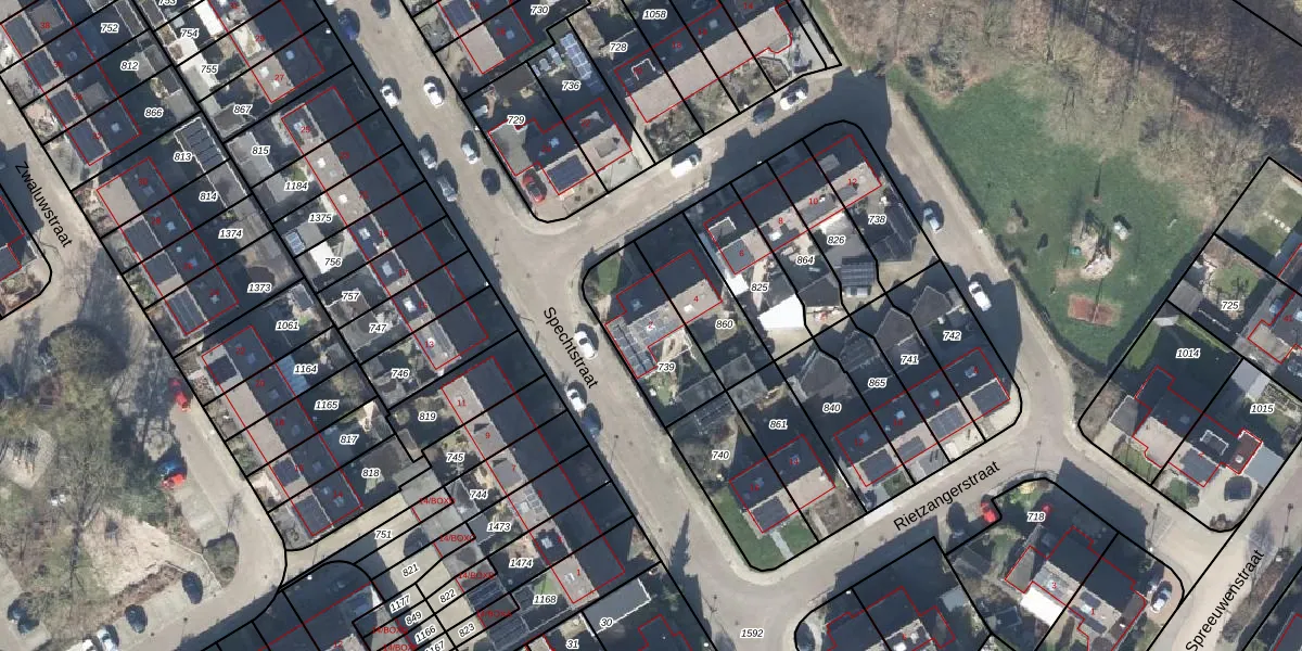 Het perceel waarop Spechtstraat 2 staat heeft een oppervlakte van 300 m². Dit is een groot perceel. De perceeloppervlakte wordt geregistreerd door het Kadaster. Gedetailleerde informatie over de maten van dit perceel kunt u vinden in het rapport Kadastrale kaart met maatvoering van Spechtstraat 2.