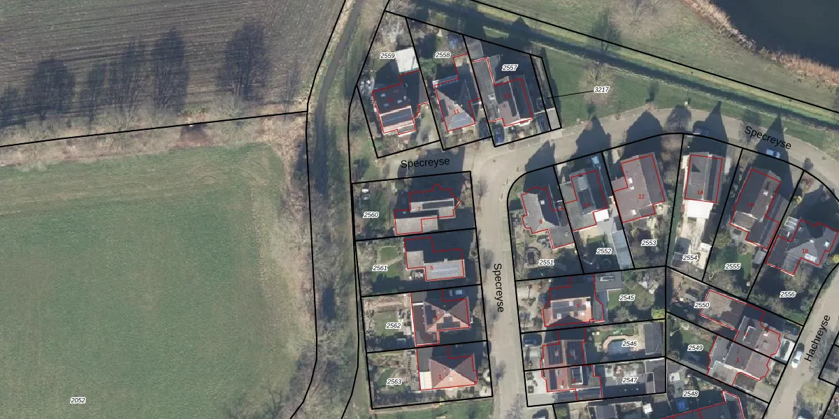 Het perceel waarop Specreyse 7 staat heeft een oppervlakte van 392 m². Dit is een groot perceel. De perceeloppervlakte wordt geregistreerd door het Kadaster. Gedetailleerde informatie over de maten van dit perceel kunt u vinden in het rapport Kadastrale kaart met maatvoering van Specreyse 7.