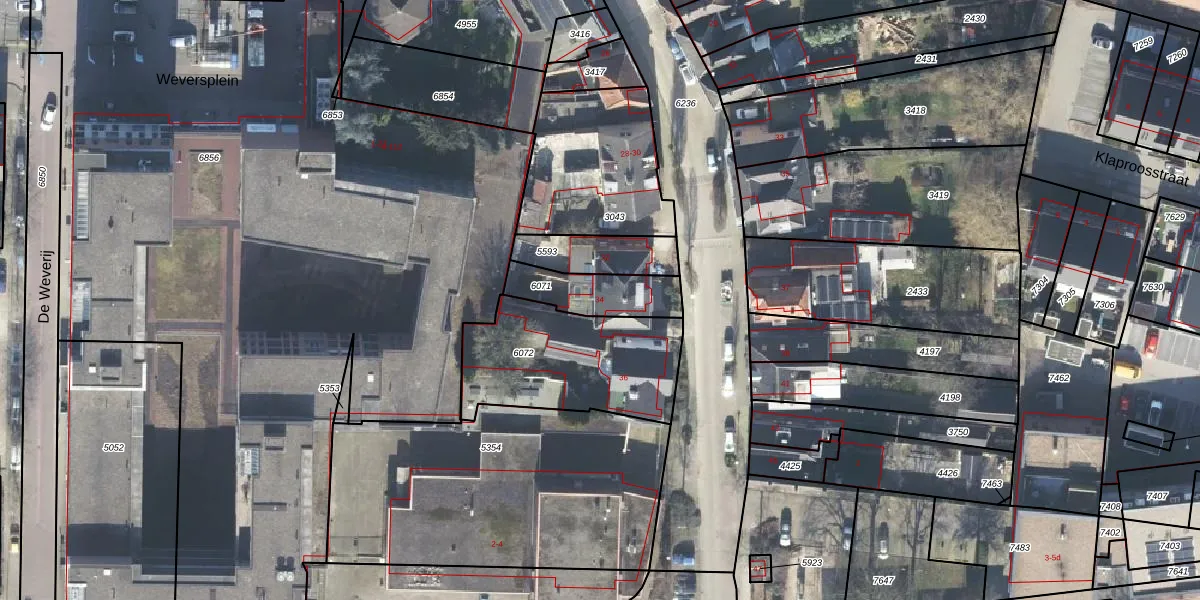 Gebruik de zoekbalk of klik op een perceel voor informatie over de adressen binnen dit perceel.