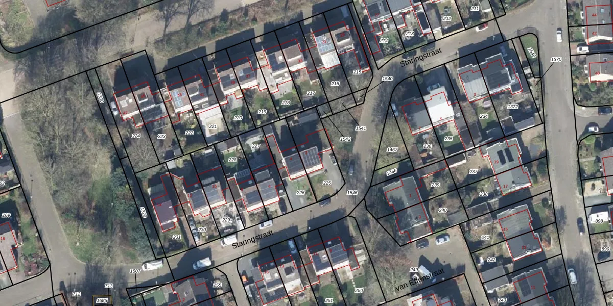 Gebruik de zoekbalk of klik op een perceel voor informatie over de adressen binnen dit perceel.