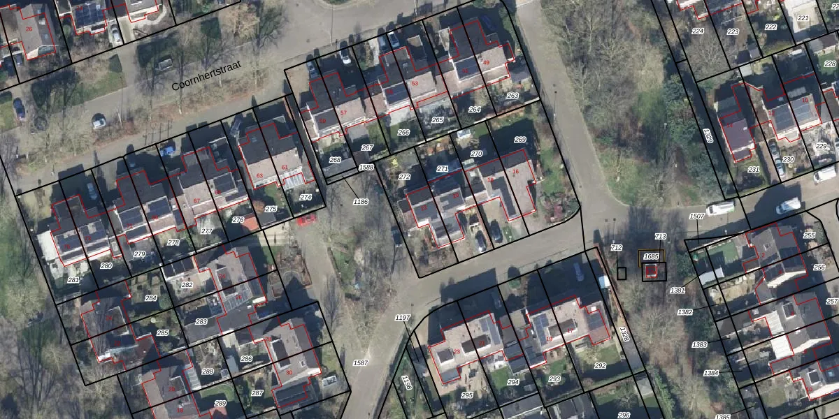 Staringstraat 22 is gelegen op kadastraal perceel GOO00D272. Deze kadastrale aanduiding is uniek en wordt gebruikt door het Kadaster om eigendomsrechten en andere zakelijke rechten vast te leggen. Het perceel maakt onderdeel uit van de kadastrale gemeente Goor.
