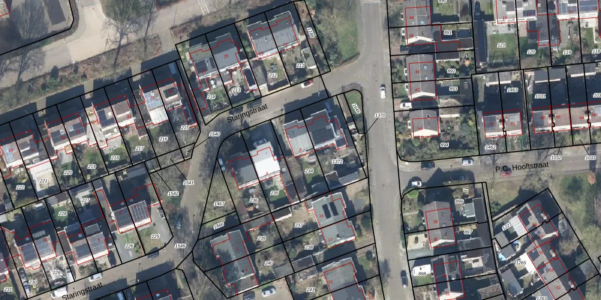 Het perceel waarop Staringstraat 3 staat heeft een oppervlakte van 305 m². Dit is een groot perceel. De perceeloppervlakte wordt geregistreerd door het Kadaster. Gedetailleerde informatie over de maten van dit perceel kunt u vinden in het rapport Kadastrale kaart met maatvoering van Staringstraat 3.