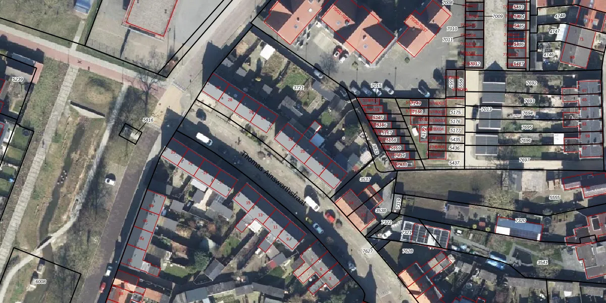 Het perceel waarop Thomas Ainsworthstraat 20 staat heeft een oppervlakte van 1625 m². Dit is een zeer groot perceel. De perceeloppervlakte wordt geregistreerd door het Kadaster. Gedetailleerde informatie over de maten van dit perceel kunt u vinden in het rapport Kadastrale kaart met maatvoering van Thomas Ainsworthstraat 20.