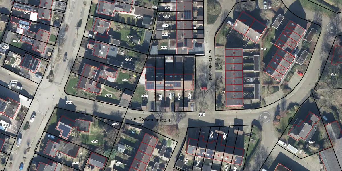 Gebruik de zoekbalk of klik op een perceel voor informatie over de adressen binnen dit perceel.