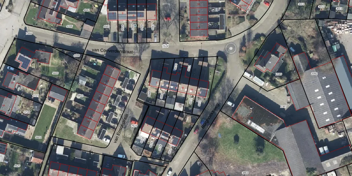 Gebruik de zoekbalk of klik op een perceel voor informatie over de adressen binnen dit perceel.
