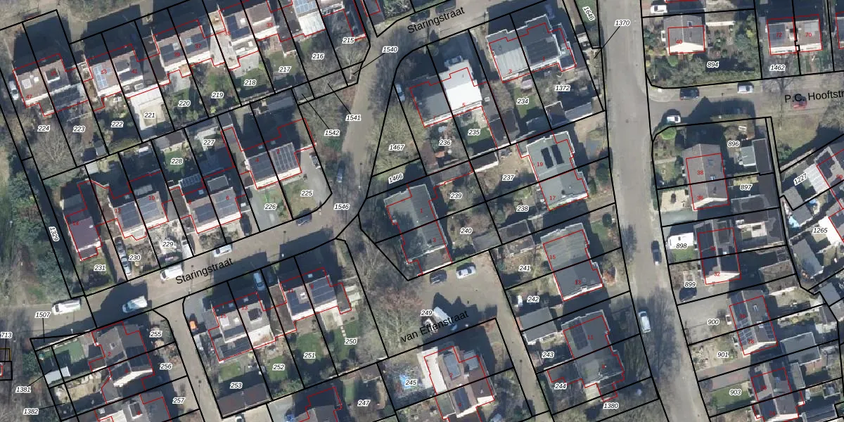 Het perceel waarop van Effenstraat 1 staat heeft een oppervlakte van 311 m². Dit is een groot perceel. De perceeloppervlakte wordt geregistreerd door het Kadaster. Gedetailleerde informatie over de maten van dit perceel kunt u vinden in het rapport Kadastrale kaart met maatvoering van van Effenstraat 1.