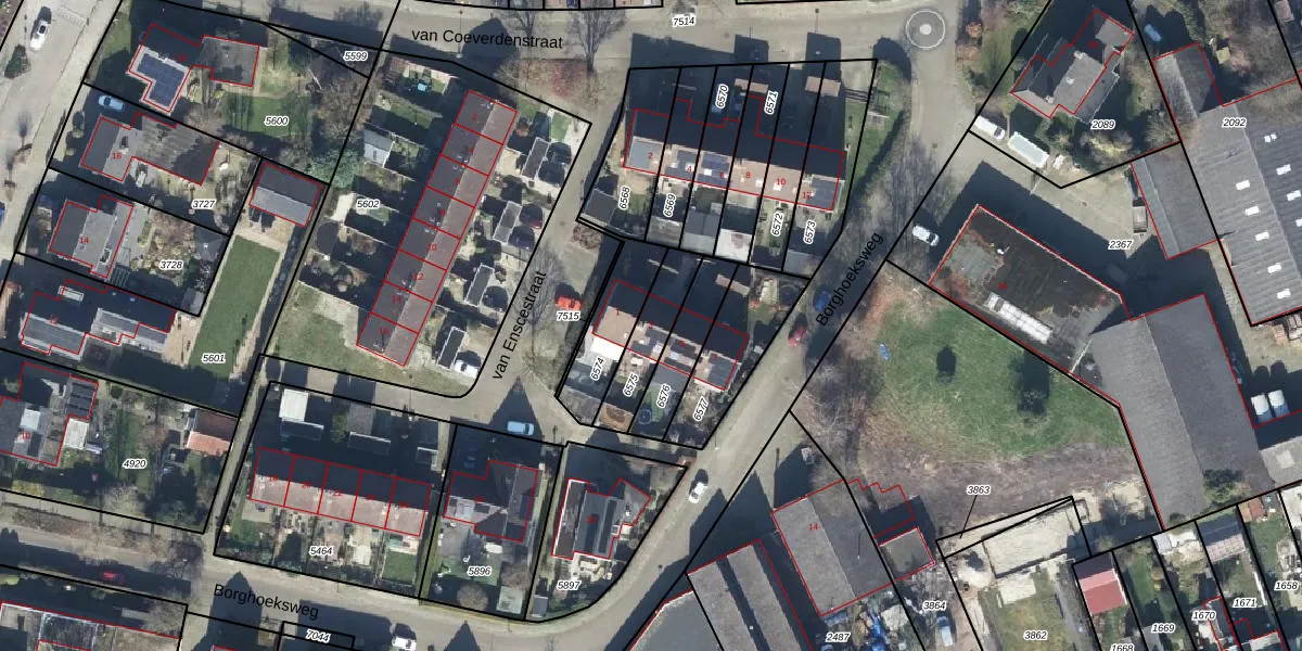 Gebruik de zoekbalk of klik op een perceel voor informatie over de adressen binnen dit perceel.