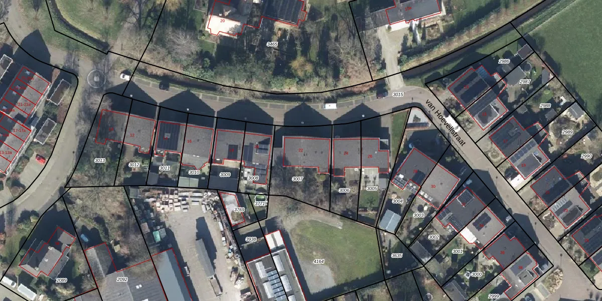 Het perceel waarop van Hoevellstraat 22 staat heeft een oppervlakte van 497 m². Dit is een groot perceel. De perceeloppervlakte wordt geregistreerd door het Kadaster. Gedetailleerde informatie over de maten van dit perceel kunt u vinden in het rapport Kadastrale kaart met maatvoering van van Hoevellstraat 22.