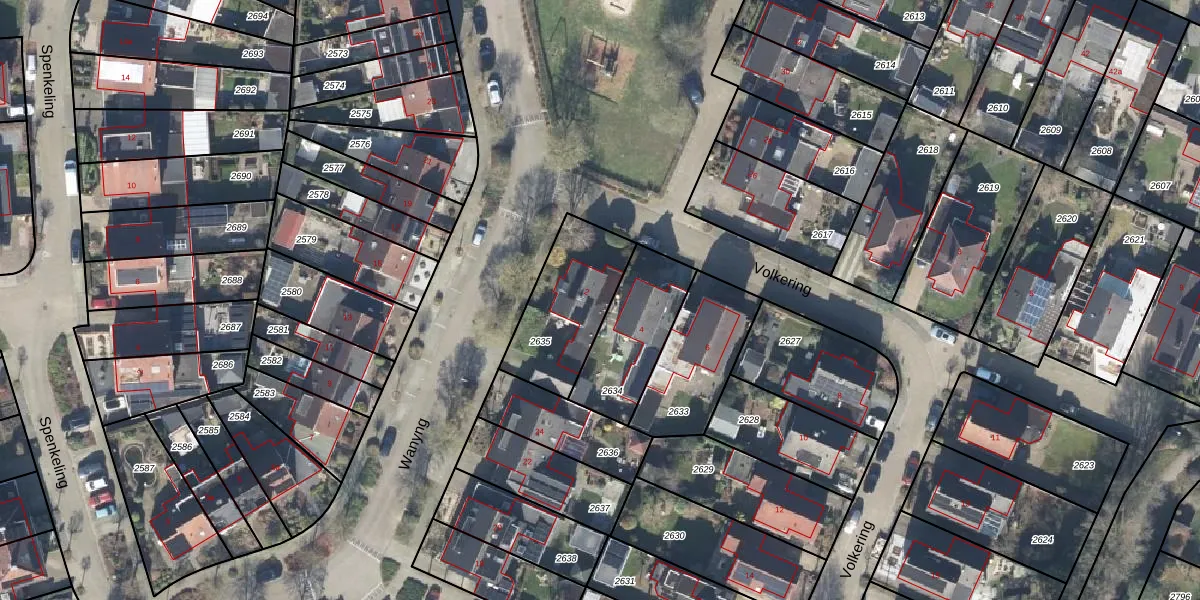 Het perceel waarop Volkering 2 staat heeft een oppervlakte van 360 m². Dit is een groot perceel. De perceeloppervlakte wordt geregistreerd door het Kadaster. Gedetailleerde informatie over de maten van dit perceel kunt u vinden in het rapport Kadastrale kaart met maatvoering van Volkering 2.