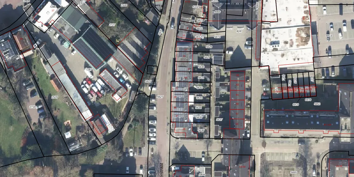 Gebruik de zoekbalk of klik op een perceel voor informatie over de adressen binnen dit perceel.
