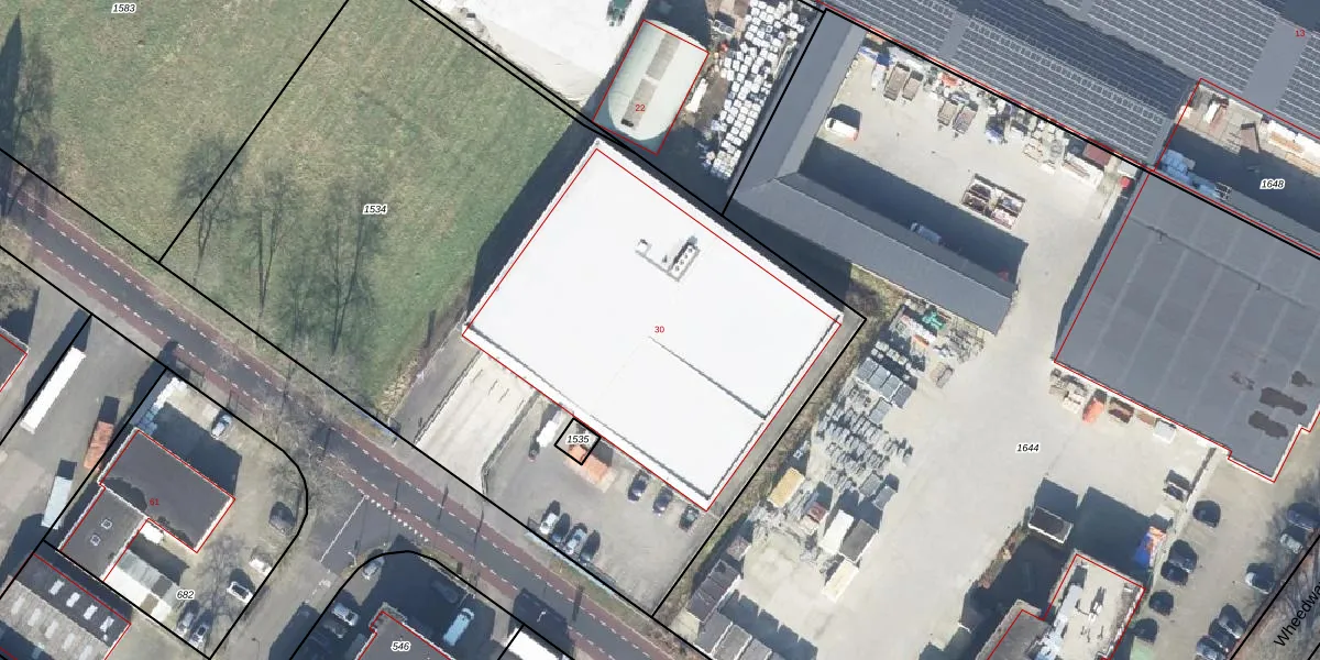 Het perceel waarop Wheeweg 30 staat heeft een oppervlakte van 5050 m². Dit is een zeer groot perceel. De perceeloppervlakte wordt geregistreerd door het Kadaster. Gedetailleerde informatie over de maten van dit perceel kunt u vinden in het rapport Kadastrale kaart met maatvoering van Wheeweg 30.