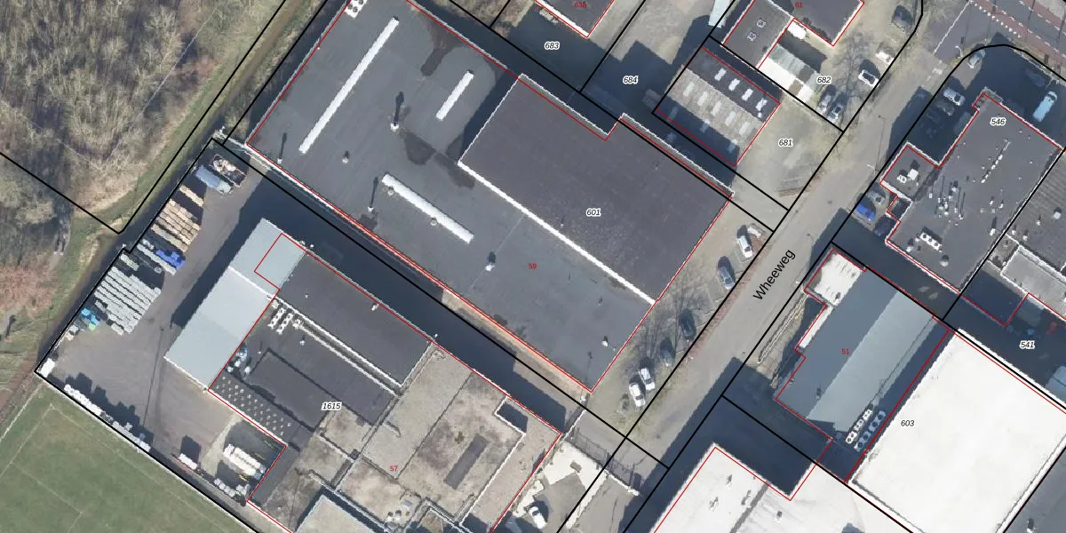 Het perceel waarop Wheeweg 59 staat heeft een oppervlakte van 4421 m². Dit is een zeer groot perceel. De perceeloppervlakte wordt geregistreerd door het Kadaster. Gedetailleerde informatie over de maten van dit perceel kunt u vinden in het rapport Kadastrale kaart met maatvoering van Wheeweg 59.