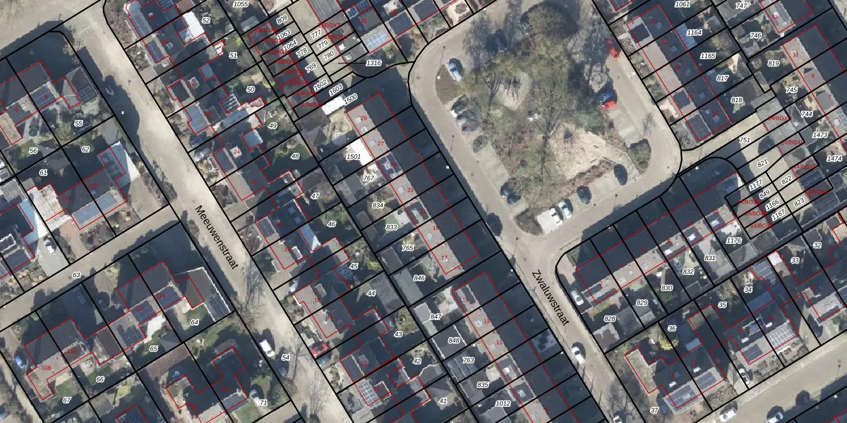 Het perceel waarop Zwaluwstraat 21 staat heeft een oppervlakte van 169 m². Dit is een middelgroot perceel. De perceeloppervlakte wordt geregistreerd door het Kadaster. Gedetailleerde informatie over de maten van dit perceel kunt u vinden in het rapport Kadastrale kaart met maatvoering van Zwaluwstraat 21.