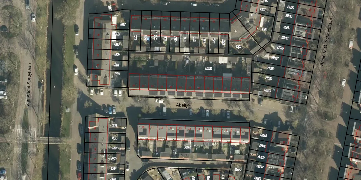Het perceel waarop Abeltje 16 staat heeft een oppervlakte van 1745 m². Dit is een zeer groot perceel. De perceeloppervlakte wordt geregistreerd door het Kadaster. Gedetailleerde informatie over de maten van dit perceel kunt u vinden in het rapport Kadastrale kaart met maatvoering van Abeltje 16.