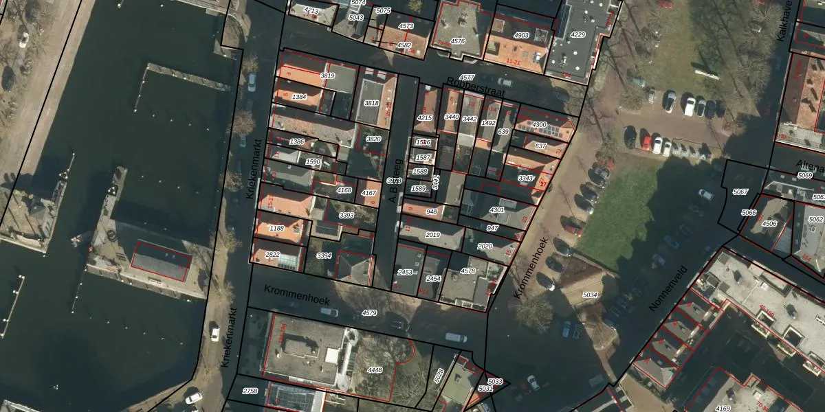 Het perceel waarop A.B.steeg 9 staat heeft een oppervlakte van 62 m². Dit is een klein perceel. De perceeloppervlakte wordt geregistreerd door het Kadaster. Gedetailleerde informatie over de maten van dit perceel kunt u vinden in het rapport Kadastrale kaart met maatvoering van A.B.steeg 9.