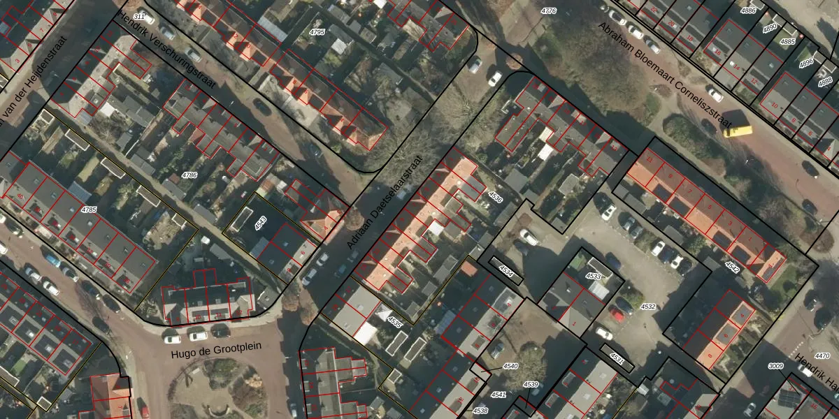 Het perceel waarop Adriaan Daetselaarstraat 7 staat heeft een oppervlakte van 1653 m². Dit is een zeer groot perceel. De perceeloppervlakte wordt geregistreerd door het Kadaster. Gedetailleerde informatie over de maten van dit perceel kunt u vinden in het rapport Kadastrale kaart met maatvoering van Adriaan Daetselaarstraat 7.