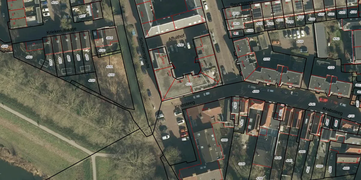 Affuithof 21 is gelegen op kadastraal perceel GRC00D4121. Deze kadastrale aanduiding is uniek en wordt gebruikt door het Kadaster om eigendomsrechten en andere zakelijke rechten vast te leggen. Het perceel maakt onderdeel uit van de kadastrale gemeente Gorinchem.